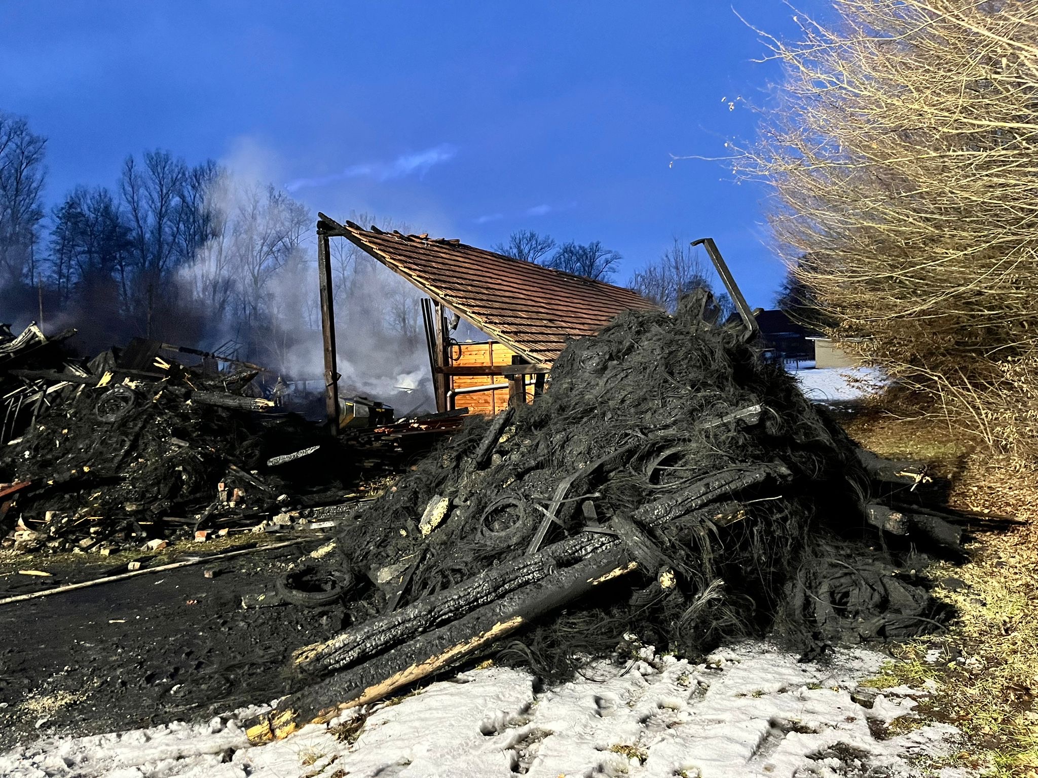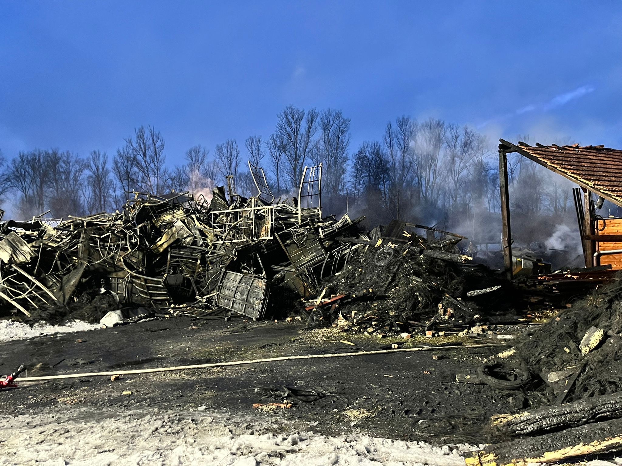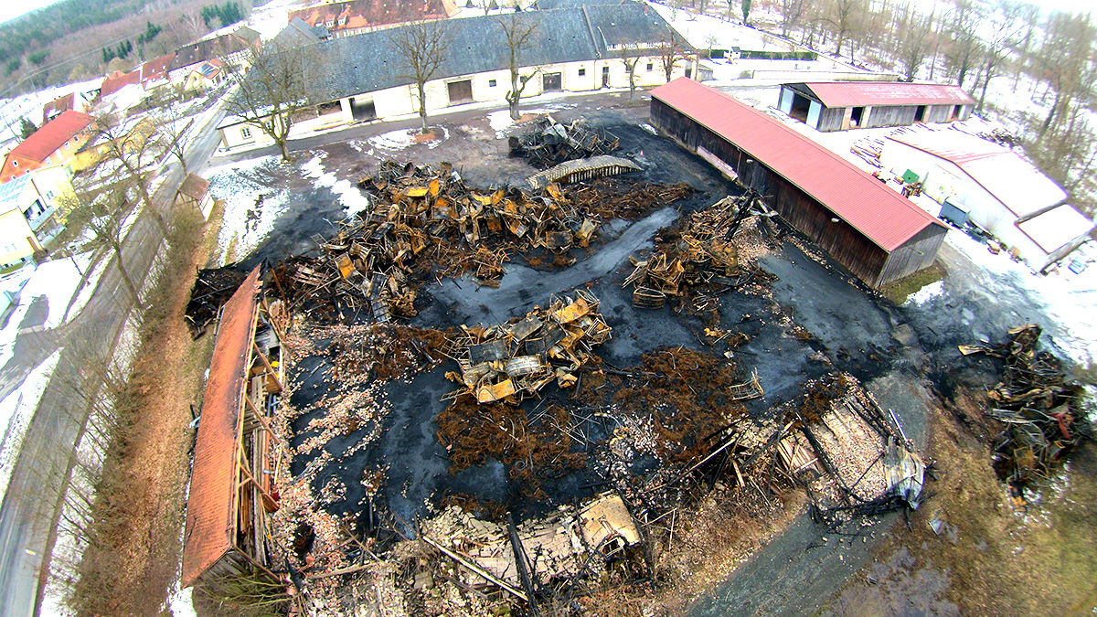 hier einige Informationen und Bilder, der vollständig abgebrannten Lagerhalle für Reifen in Eyrichshof. Am Freitag 30.01.2026 brannte eine unserer Lagerhallen komplett nieder. In der Halle befanden sich rund 15.000 Reifen. In die doch von außen sehr unscheinbare "Scheune" passten insgesamt knapp 30.000 Reifen.