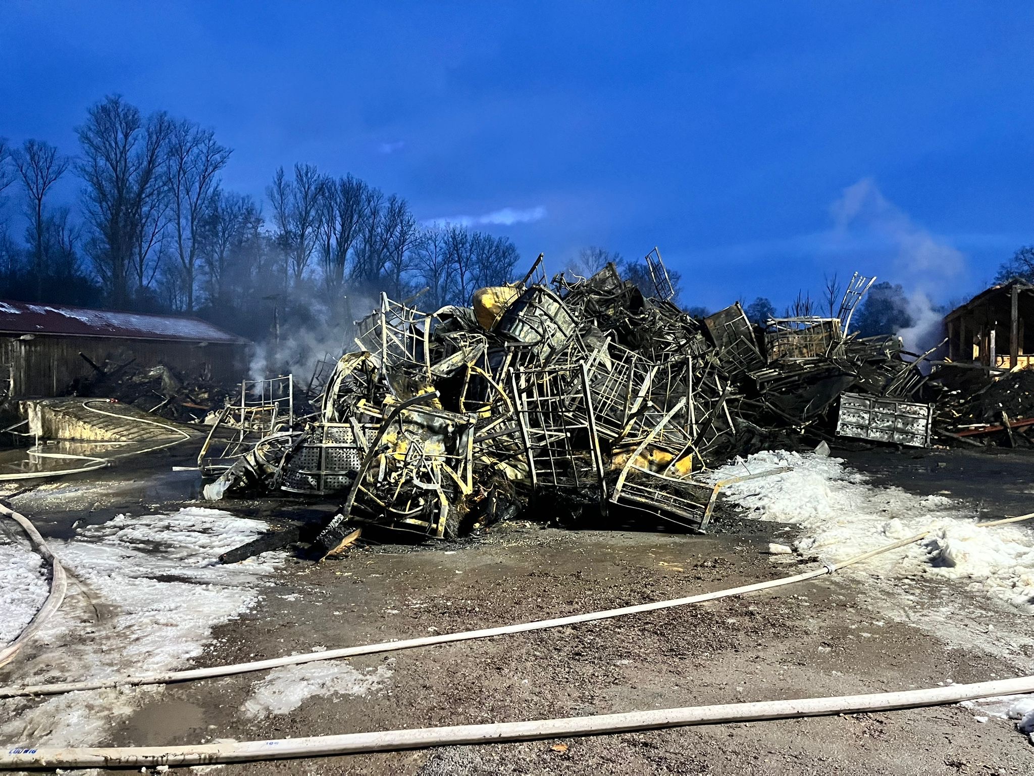 hier einige Informationen und Bilder, der vollständig abgebrannten Lagerhalle für Reifen in Eyrichshof. Am Freitag 30.01.2026 brannte eine unserer Lagerhallen komplett nieder. In der Halle befanden sich rund 15.000 Reifen. In die doch von außen sehr unscheinbare "Scheune" passten insgesamt knapp 30.000 Reifen.